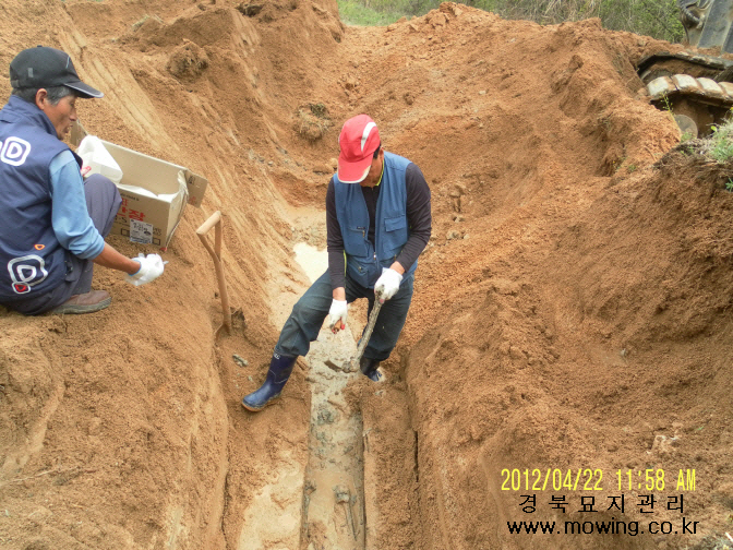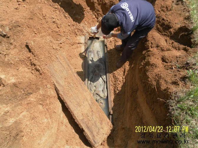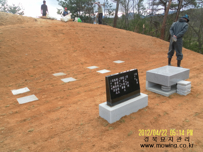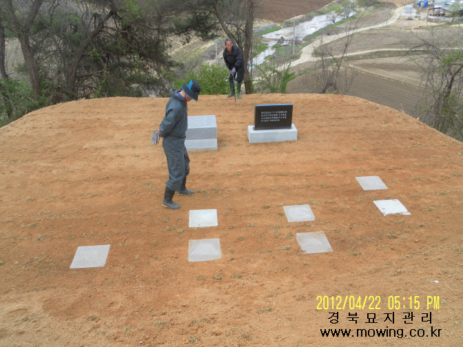 김태수님 위치: 안동시 옹천면 소재 작업내용: 평장묘조성 1-1. 파묘 1-2. 묘지개장 및 유골수습 1-3. 시립화장장 2-1. 파묘 2-2. 묘지개장 및 유골수습 3-1. 파묘 3-2. 묘지개장 및 유골수습 4. 평장묘조성 작업완료