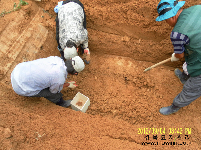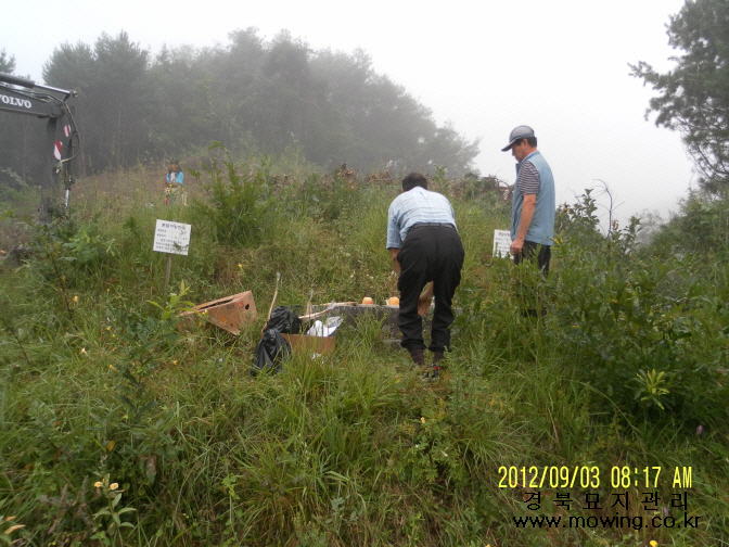 강창기님 위치: 영주시 이산면 신천리 작업내용: 묘지공사 1.작업전 제사및파묘 묘지개장 및 유골수습 2.작업전 파묘 묘지개장 및 유골수습 3.작업전 묘지개장 및 유골수습 4.작업중 묘지개장 및 유골수습 5.작업전 묘지개장 및 유골수습 6.작업전 묘지개장 및 유골수습 7.작업전 묘지개장 및 유골수습 8.작업전 묘지개장 및 유골수습 묘지공사중 작업완료